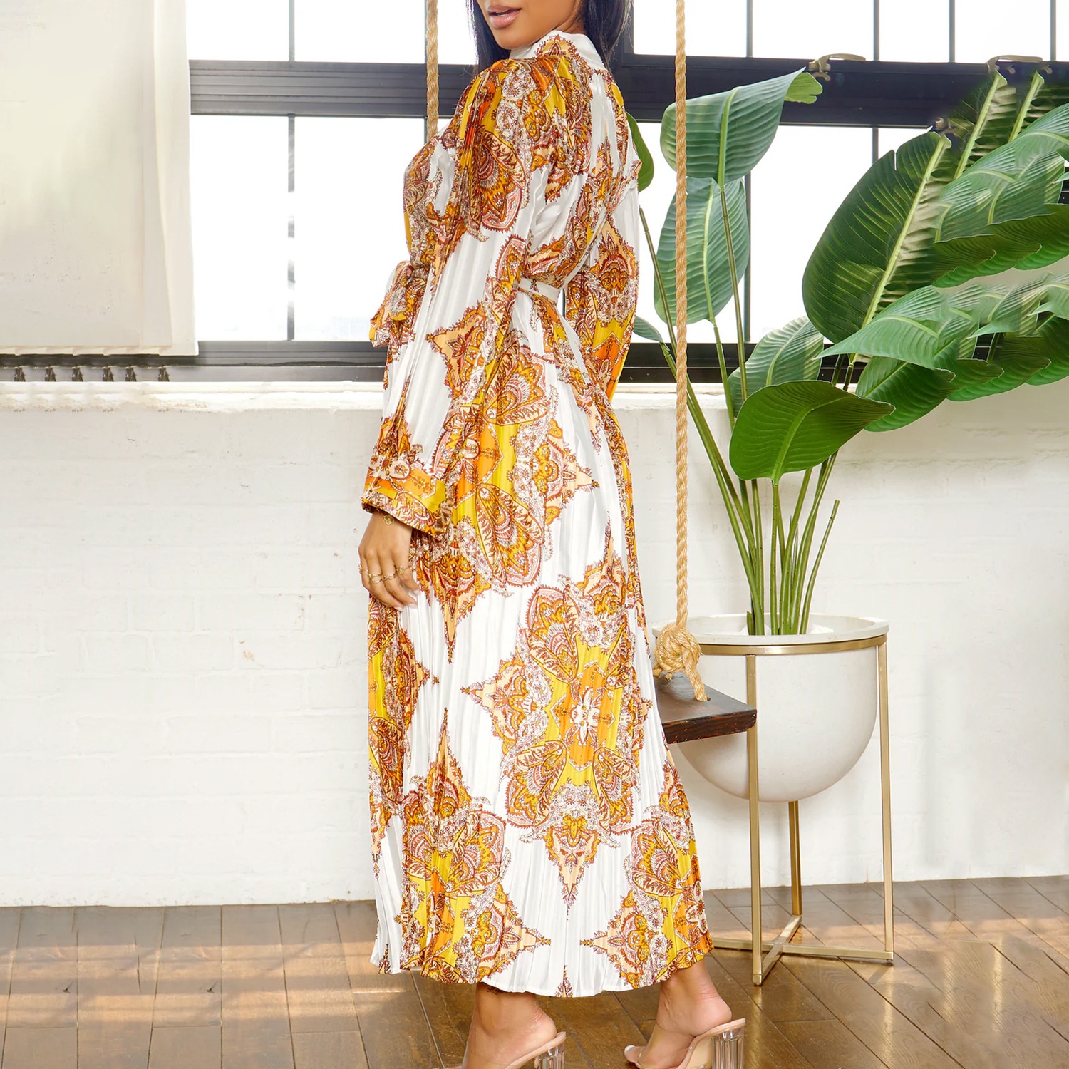 Fashion Women's Wear Printed Long Sleeve Pleated Dress