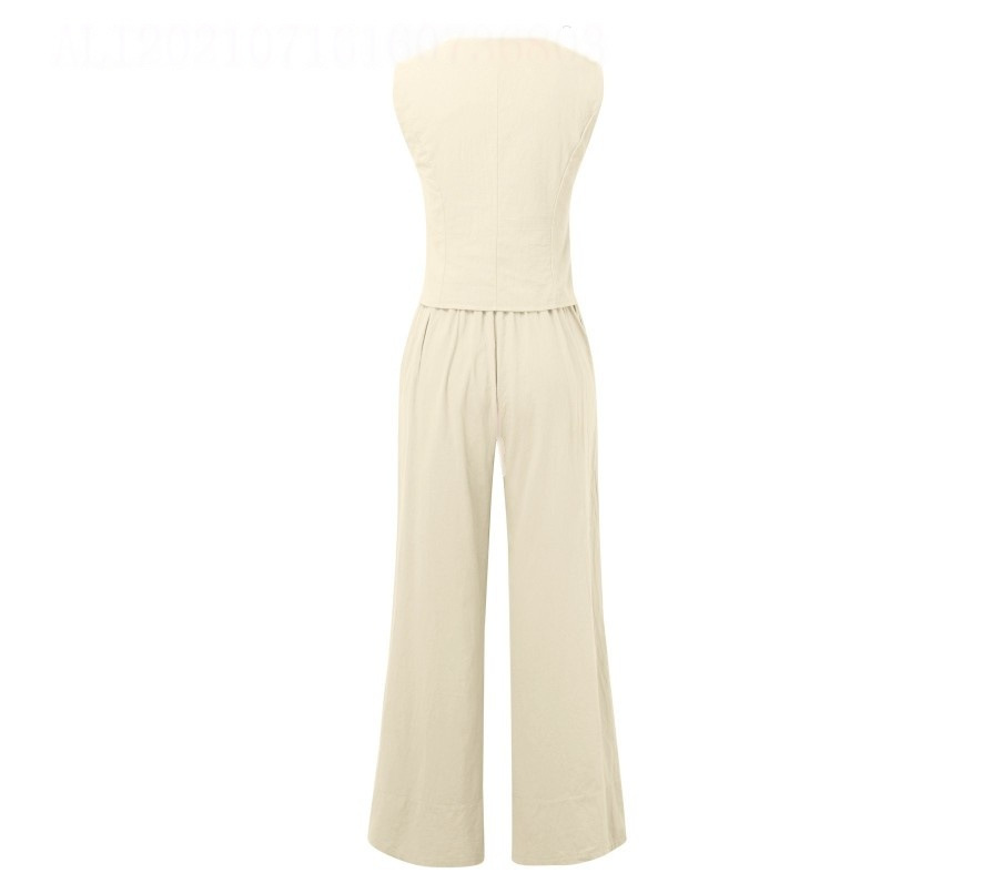 Fashionable Vest & Pants Patchwork Set - Women's Casual Cotton Linen Outfit, Trendy Matching Two-Piece For Daily Wear
